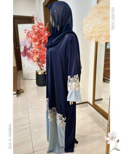 Blue abaya Delicate gold buttons with stole