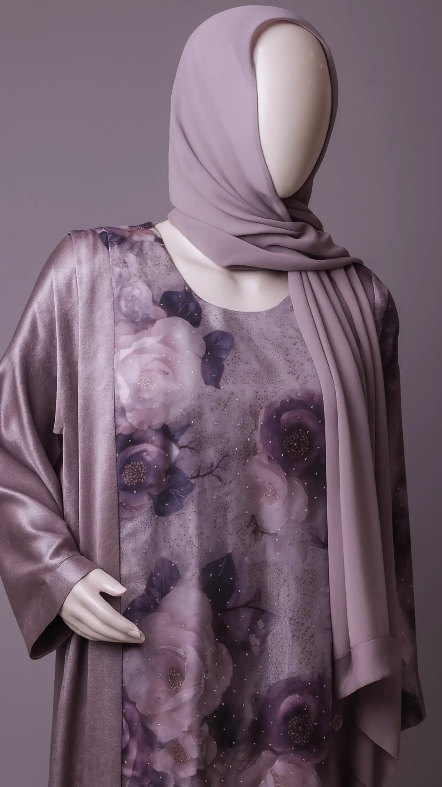 Design: Floral printed inner with crystal embellishments and plain lilac outer