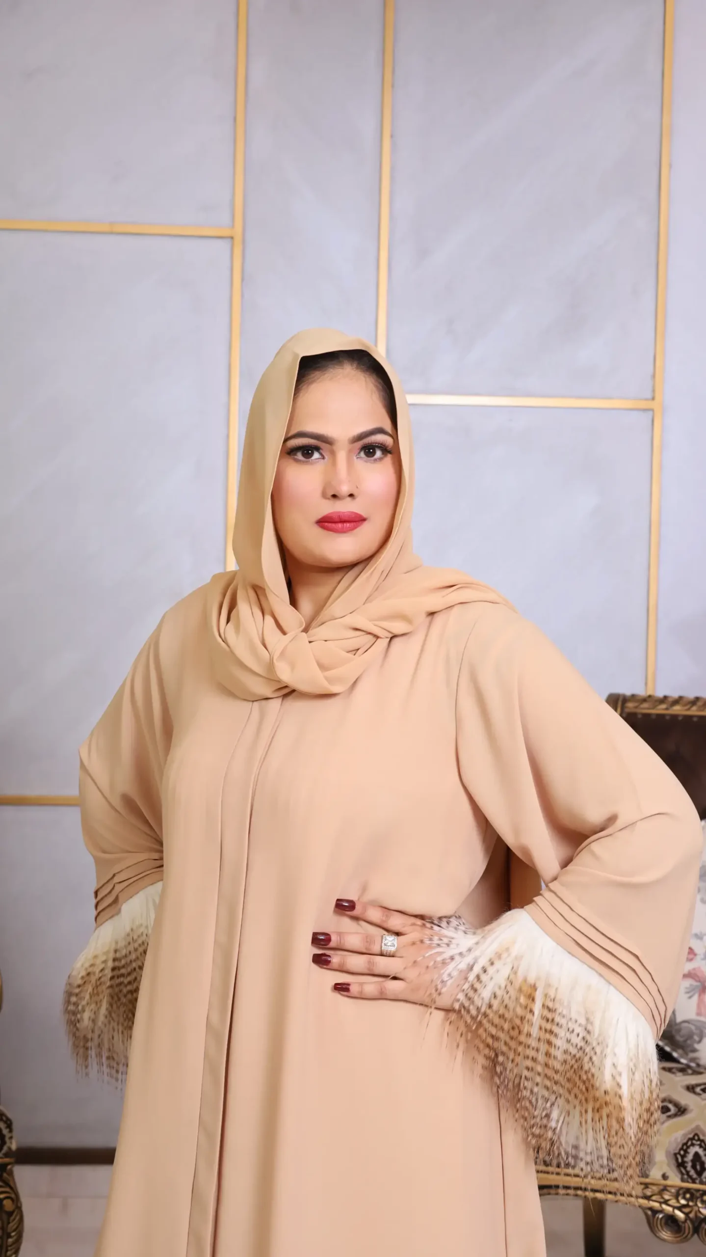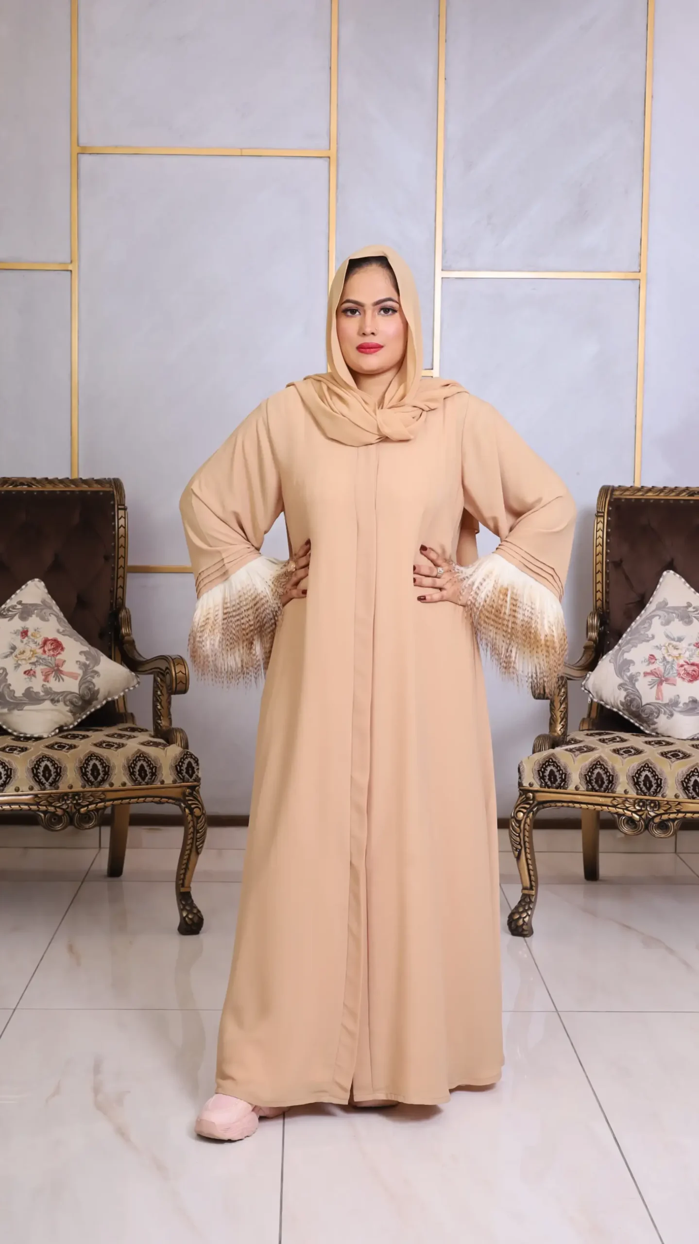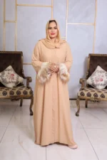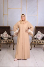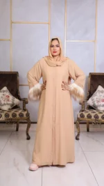 Embrace understated elegance with our Abaya with Stole, a modern take on timeless modesty. Draped in a soft, warm beige that whispers sophistication, this abaya is crafted from a lightweight, flowing fabric that moves with graceful ease.