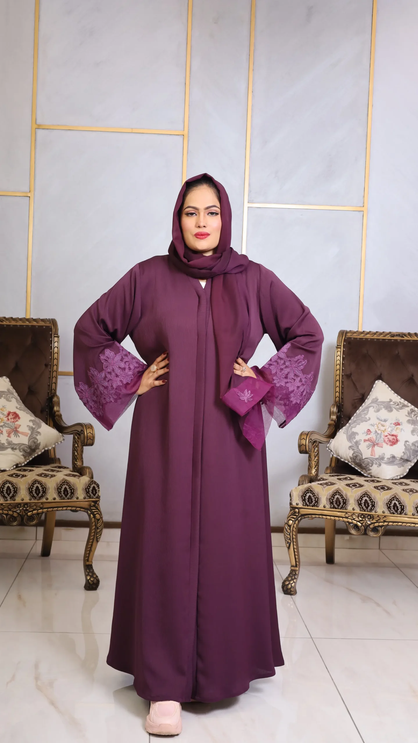 Embrace understated elegance with the Plum Blossom Abaya. Draped in a rich, dark plum hue, this abaya whispers sophistication. Feel the gentle flow of the soft, matte fabric as you move with grace. The wide sleeves are adorned with delicate floral embroidery, mirroring the subtle blooms that cascade down the front panel. A timeless piece, perfect for reflecting inner beauty and quiet confidence. Complete your look with a matching hijab for a seamless expression of modest refinement.
