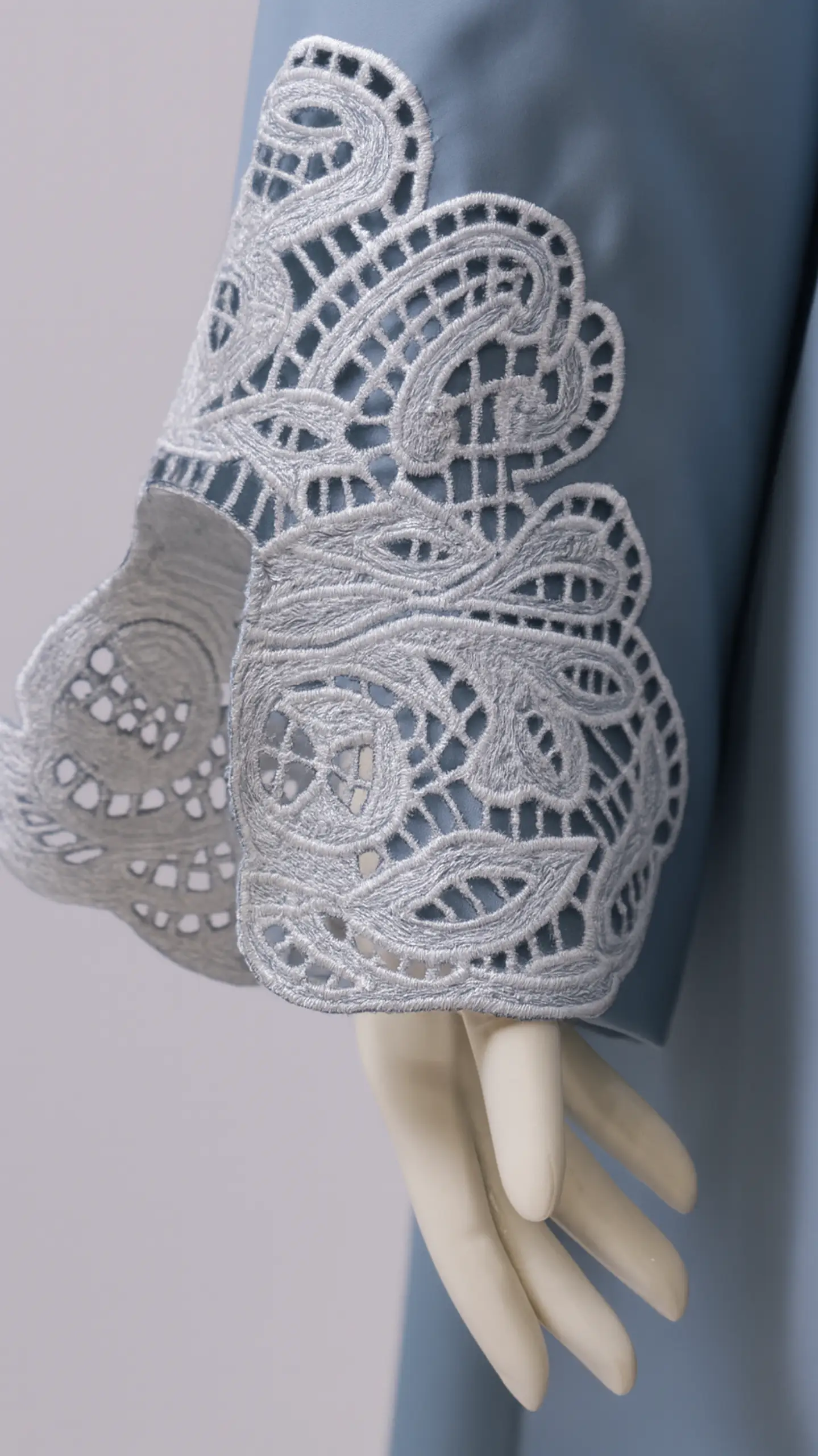 Design: Intricate laser-cut detailing on sleeves with a classic silhouette